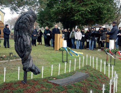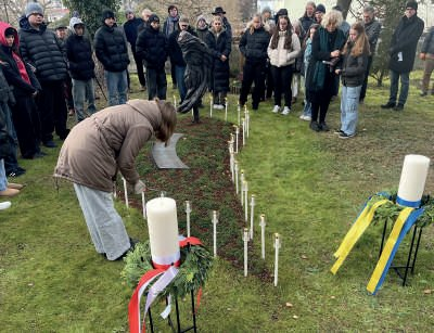 Po wojnie temat ten był przemilczany. Od lat miejscowa historyczka i dokumentalistka Anna Andlauer walczy z zapomnieniem, weryfikując dokumenty, pisząc książki, organizując dni pamięci i wystawy. Z jej inicjatywy powstał trzeci już pomnik upamiętniający zamordowane niemowlęta, którego odsłonięcie miało miejsce 21 listopada 2025 roku. Przybyło na nie ponad 160 osób. Pierwszy pomnik, wykonany z dębowych desek z nazwiskami ofiar, szybko uległ zbutwieniu. Drugi, widoczny do dziś, to trzy aluminiowe rury z wypalonymi nazwiskami, stojące jednak poza miejscem pochówku niemowląt, którego to lokalizacja długo pozostawała nieznana. Dopiero jeden z mieszkańców, Konrad Menter, który jako dziesięcioletni ministrant uczestniczył w pogrzebach, wskazał właściwe miejsce. Oto jego relacja: „Z baraku na cmentarz kazano nam iść tylko polną drogą, wcześnie rano, aby miejscowa społeczność nas nie widziała. Pierwszy pochówek odbył się dostojnie — ksiądz i my, ministranci, odświętnie ubrani, z krzyżem, kadzidłem i świecami, podkreślaliśmy powagę chwili. Nad otwartym grobem była biała trumienka i hałda ziemi. Pełen godności pochówek nie spodobał się jednak nadzorującej komendantce i odtąd musieliśmy służyć w cywilnych ubraniach, a ksiądz chował krzyż pod sutanną.” Uroczystość rozpoczęło powitanie przybyłych przez burmistrza Gminy. Następnie głos zabrała zastępczyni starosty powiatu Dachau, pani Maresse Hoffmann, wypowiadając ważne słowa, które niestety nie zostały przytoczone w relacjach obecnych tam niemieckich dziennikarzy: „To przodkowie naszego niemieckiego narodu zgotowali tym niewinnym dzieciom piekło. Dziś bierzemy za to pełną odpowiedzialność!” Powyższą wypowiedź uzupełnił Konsul Generalny Ukrainy, Yurii Nykytiuk (ukraińskie dzieci także są wśród ofiar), nawiązując do czasów obecnych: „Dziecko nigdy nie jest wrogiem! Wspominając te dzieci, nie chodzi wyłącznie o odpowiedzialność historyczną, lecz także o przypomnienie, że przemoc wobec najmłodszych nie jest zamkniętym rozdziałem historii. Tysiące dzieci nadal cierpią w wyniku wojny na Ukrainie. Dziś w bólu przeszłości dostrzegamy cień teraźniejszości.” Konsul Generalny RP w Monachium, Rafał Wolski, przypomniał o konieczności zachowania pamięci o najsłabszych ofiarach niemieckich nazistów: „80 lat temu te dzieci były bezbronne i stały się ofiarami rasistowskiego szaleństwa; dla oprawców liczyła się tylko niewolnicza praca i wyzysk. Nigdy nie wolno o nich zapomnieć.” Z kolei Anna Andlauer, niezwykle obrazowo nakreślając dramat matek zmarłych dzieci, powiedziała: „Matki były pozbawione praw i nie mogły się bronić. Podczas gdy niemieccy żołnierze Wehrmachtu niszczyli ich ojczyznę, te kobiety musiały zastąpić ich jako siła robocza. Jak czuła się młoda kobieta w obcym kraju, która zachodziła w ciążę? Jak czuła się matka, gdy musiała oddać swoje dziecko na śmierć w ręce wroga? W barakach nazistowskich dzieci wegetowały bez wystarczającego pożywienia i opieki. W cierpieniu musi być jakaś nadzieja; musi istnieć inna sprawiedliwość. Rzeźba, choć milczy, krzyczy o człowieczeństwo i sprawiedliwość.” Rzeźbiarka Ingrid Gottschalk, autorka pomnika, nadała temu niewyobrażalnemu cierpieniu artystyczną formę w postaci złamanego skrzydła anioła. Szukając inspiracji, natknęła się na słowa z Biblii: „Bo do Ciebie się chroni moja dusza; w cieniu Twych skrzydeł się chowam, aż minie nieszczęście.” Skrzydła, które miały chronić dzieci, zostały złamane przez nazistów i nieszczęście ich nie ominęło. Cierpienie niemowląt, metaforycznie odlane w brązie, na pierwszy rzut oka przypomina ciemnego ptaka stojącego nad mogiłą. Z bliska jednak widać złamane skrzydło, sklejone w ciemną poszarpaną masę. Głębokie rysy, symboliczne bruzdy bólu wiją się w bezkresie rozpaczy i bezradności. Z objęcia skrzydła wyłania się twarz dziecka – symbol 35 zamordowanych maluchów. Zamknięte oczy i spokojne oblicze ukazują obecność duszy mimo cierpienia ciała. Na tablicy niżej położonej, niczym cień połamanego skrzydła, widnieją imiona pozostałych niewinnych ofiar. Miejscowy ksiądz ewangelicki oraz ukraiński kapelan Atamanyuk poświęcili rzeźbę, a następnie wspólnie odmówili modlitwę „Ojcze nasz” w języku niemieckim, polskim i ukraińskim. Młodzież szkolna wykonała pieśni w tych trzech językach, a siarczysty mróz uświadomił uczestnikom, z jakim zimnem musiały zmagać się tamte niemowlęta. Wzruszającym momentem było zapalenie dużych świec przez przedstawicieli obydwu konsulatów. Następnie uczniowie odczytywali imiona dzieci i w ciszy zapalali dla każdego z nich pochodnie ustawione wokół mogiły, przywracając tym pamięć o zapomnianych najmłodszych ofiarach II wojny światowej. Andrzej Białas (zdjęcia autora)