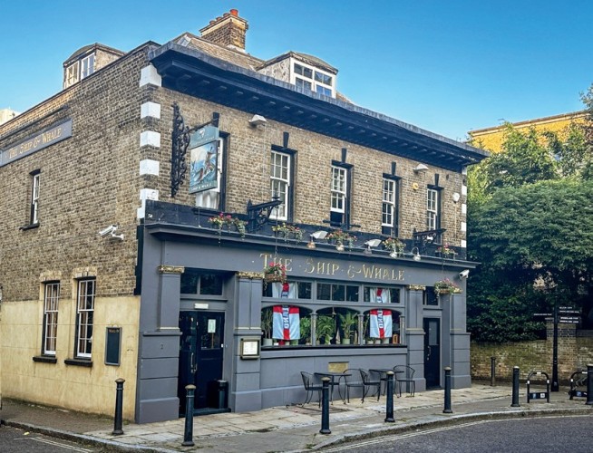 Dziś zostało ich niewiele, ale jeden z nich ma w sobie całą duszę tamtych czasów. Pub „The Ship & Whale” przy Gulliver Street. To jeden z najstarszych budynków w okolicy. Pierwsze wzmianki o pubie pojawiają się już w dokumentach z 1767 roku, choć obecny gmach odbudowano pod koniec XIX wieku. Kiedy siedzę przy drewnianym stole, myślę o tym, że dokładnie w tym samym miejscu ponad sto lat temu piwo pili dokerzy, stoczniowcy i marynarze wracający z wielomiesięcznych rejsów. W środku wiszą stare fotografie Rotherhithe, portu i doków. Z pubowego ogródka widać zabytkowy budynek Odessa Wharf z 1810 roku – dawny magazyn i zaplecze stoczniowe. Cała okolica wygląda jak żywe muzeum londyńskiej historii morskiej.