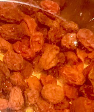 Rodzynki moczymy w wodzie przez noc, odsączamy, zagotowujemy z winem – nie za długo, aby nie utracić formy wywaru, najlepiej nie odchodzić od kuchenki. Całość miksujemy, po czym przecieramy przez sito – gdy nasz gąszcz jest zbyt płynny, odparowujemy na małym ogniu do żądanej konsystencji. Podajemy do ryb na gorąco.