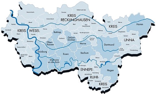 Prosperita gospodarcza, która ogarnęła Niemcy po restytucji Rzeszy w roku 1871, zbiegła się z początkiem dynamicznej industrializacji w przylegających do siebie rejonach Nadrenii i Westfalii. Z czasem przyjęła się dla nich nazwa Zagłębie Ruhry, bowiem to rzeka Ruhra wytyczyła południową granicę regionu; rubieże zachodnie i północne przecinają, odpowiednio, rzeki Ren i Lippe, a okolicę, gdzie Zagłębie wybrzmiewa na wschodzie, wyznacza miasto Hamm. Ostateczny zakres obszaru wyznaczył najdalszy zasięg uprzemysłowieniaZagłębie Ruhry i Westfalczycy