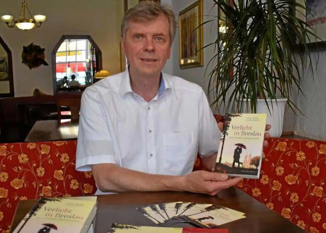 Czasem podążamy za głosem intuicji, nie spodziewając się, dokąd nas zaprowadzi. W listopadzie ubiegłego roku, w drodze powrotnej z urlopu w Górach Harz, zatrzymaliśmy się z mężem w Wolfenbüttel. Przy głównym placu wypatrzyliśmy uroczą Café am Stadtmarkt o secesyjnym wystroju. Kiedy tylko przekroczyłam jej próg, jakiś impuls popchnął mnie nie w kierunku pierwszego wolnego stolika, lecz niskiego regału, na którym leżało kilka książek. Wyglądały na pospolite „czytadła”, po które goście sięgają dla zabicia nudy. Jedna z nich była zupełnie nowa, oprawiona w folię.„Zakochani we Wrocławiu” – książka znaleziona w kawiarni